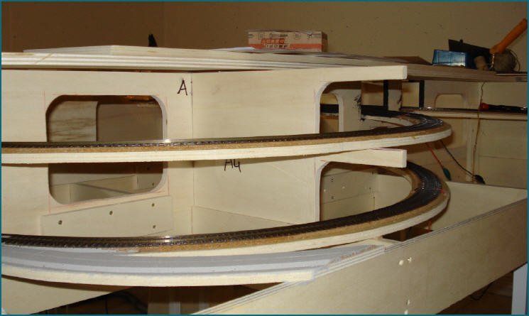 Der Unterbau auf dem die Spanten und Trassen aufgebaut werden, besteht aus einem Leistengitter aus 20mm Birkensperrholz. Diese werden millimetergenau zugeschnitten, verleimt und verschraubt. Einzelne Segmente werden untereinander mit 10mm Schrauben fixiert.